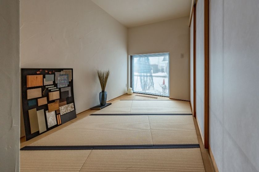 道産木材、畳、塗り壁など自然素材を採用。