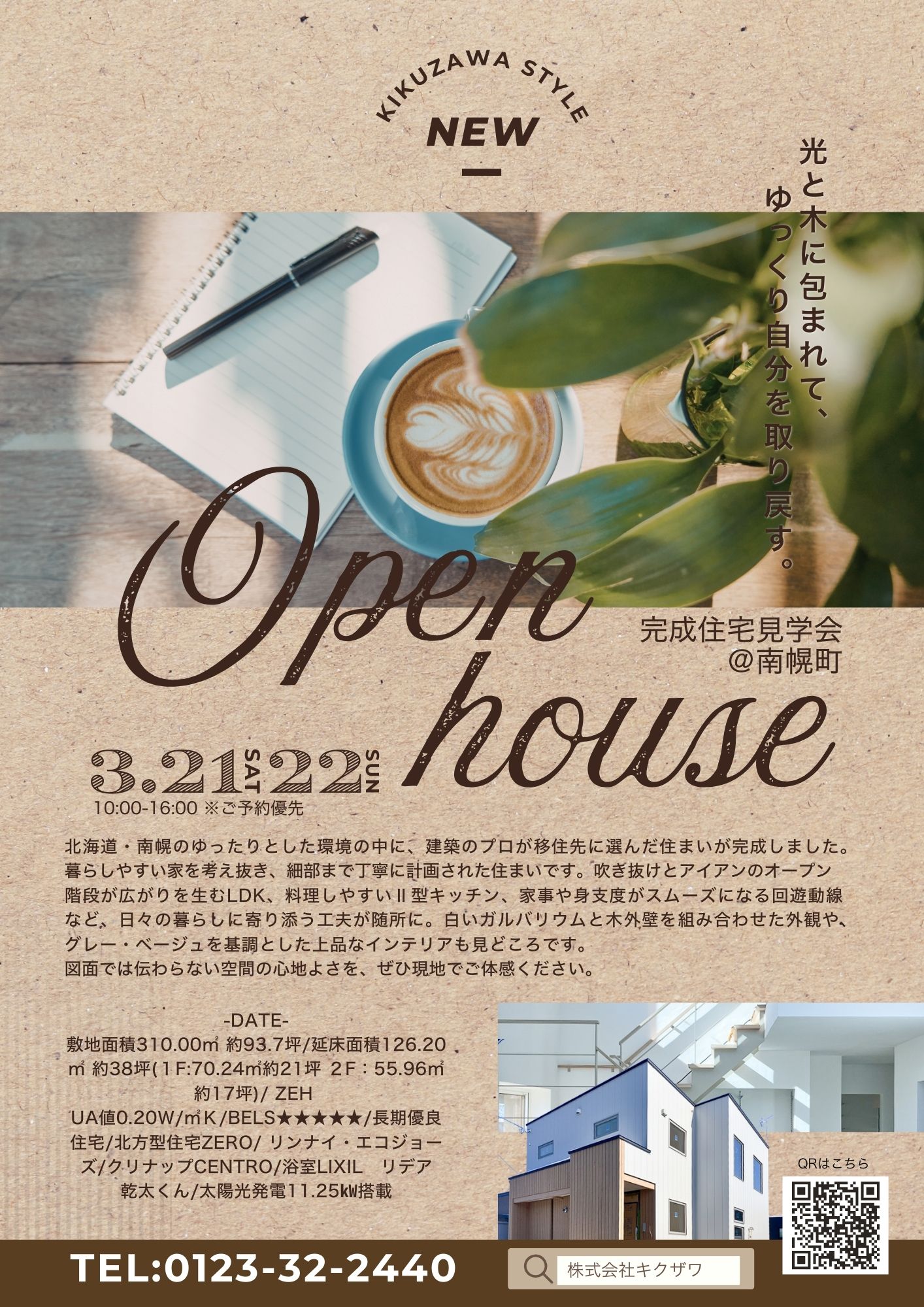 完全予約制ではありませんので当日の飛び込み見学も可能です。ご希望のお客さまには住所をお知らせしますので、事務所0123-32-2440までお電話でお問合せ下さい。